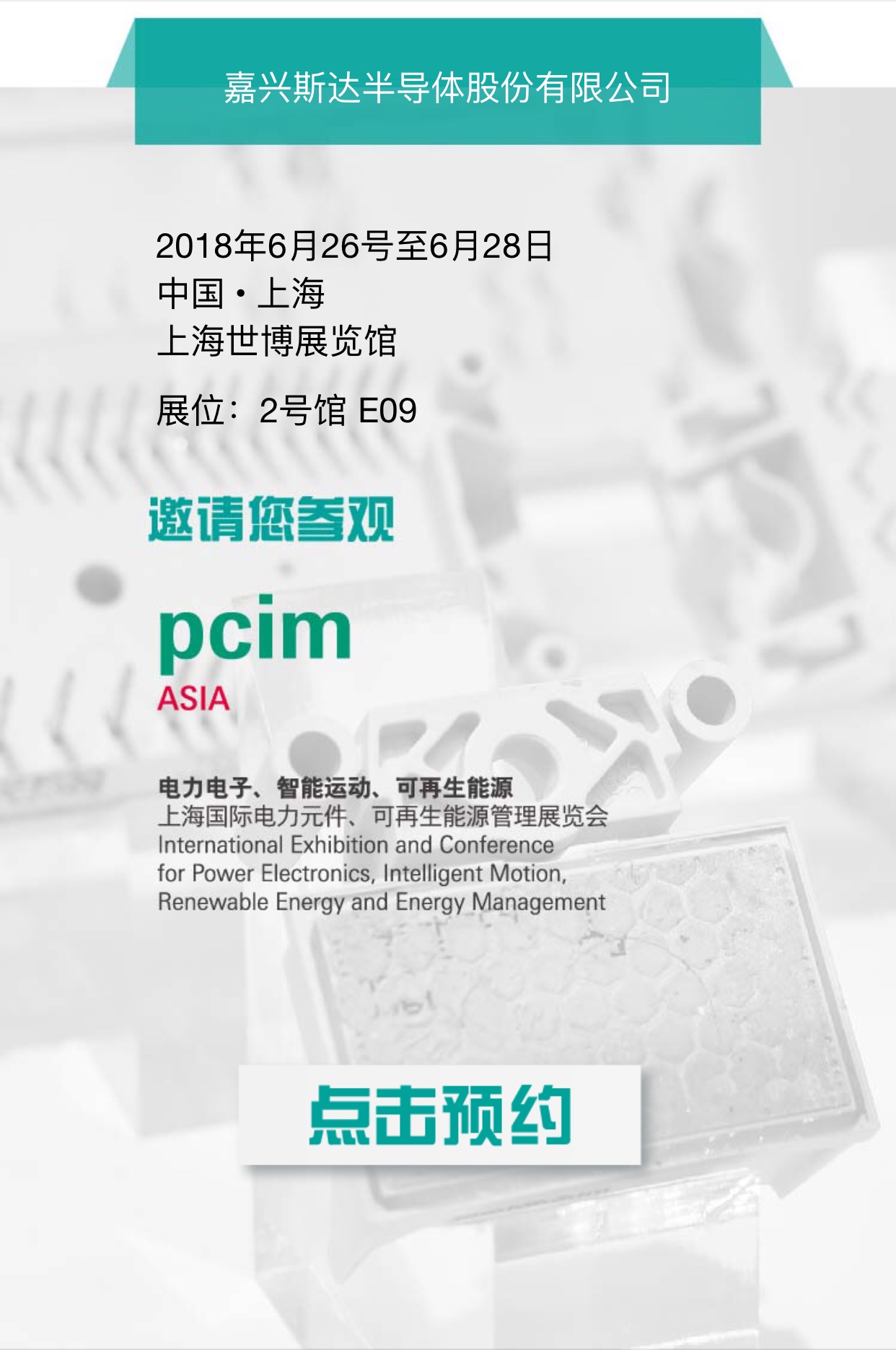 6月26~28日,2018上海國(guó)際電力元件、可再生能源管理展覽會(huì)(PCIM ASIA)將在上海世博展覽館舉辦,嘉興斯達(dá)半導(dǎo)體股份有限公司誠(chéng)邀您蒞臨2號(hào)館E09展位參觀指導(dǎo)。