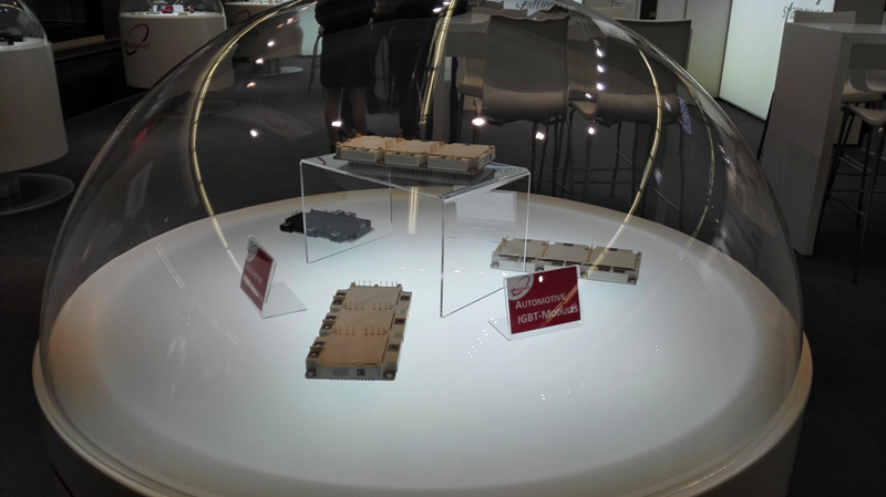本年度的新產品主要包括車用Pin-fin版1200V/800A C6.1模塊、62mm 1200V/300A碳化硅模塊及預涂敷相變導熱材料模塊系列(TIM)等。斯達新產品吸引了大量客戶和同行的駐足,斯達歐洲公司的同事熱情地向眾多參觀者進行詳細講解。