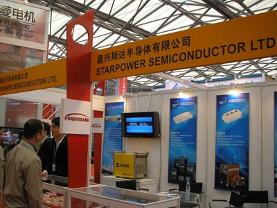 在展臺上,斯達半導(dǎo)體公司展出了公司兩大系列產(chǎn)品,IGBT模塊和MOSFET模塊。據(jù)工作人員介紹,斯達半導(dǎo)體的IGBT模塊按照耐壓等級分為600V,1200V和1700V三個系列,在每個系列里面又按照模塊內(nèi)部的電路結(jié)構(gòu)分成若干部分,每一種電路結(jié)構(gòu)下面有若干電流等級的產(chǎn)品。斯達半導(dǎo)體的MOSFET模塊按照電路結(jié)構(gòu)分為單開關(guān)、斬波器、半橋、全橋和三相橋等系列,每一種電路結(jié)構(gòu)下面有若干電壓電流等級的產(chǎn)品。